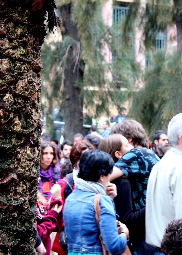 Dans les rues, devant les locaux où se tient le vote, les gens sont attroupés, discutent, rient, solidarisent. À divers moments, la foule applaudit, acclamant surtout les « avis » et les « avias », les personnes les plus âgées qui viennent voter en chaise roulante ou la canne à la main.