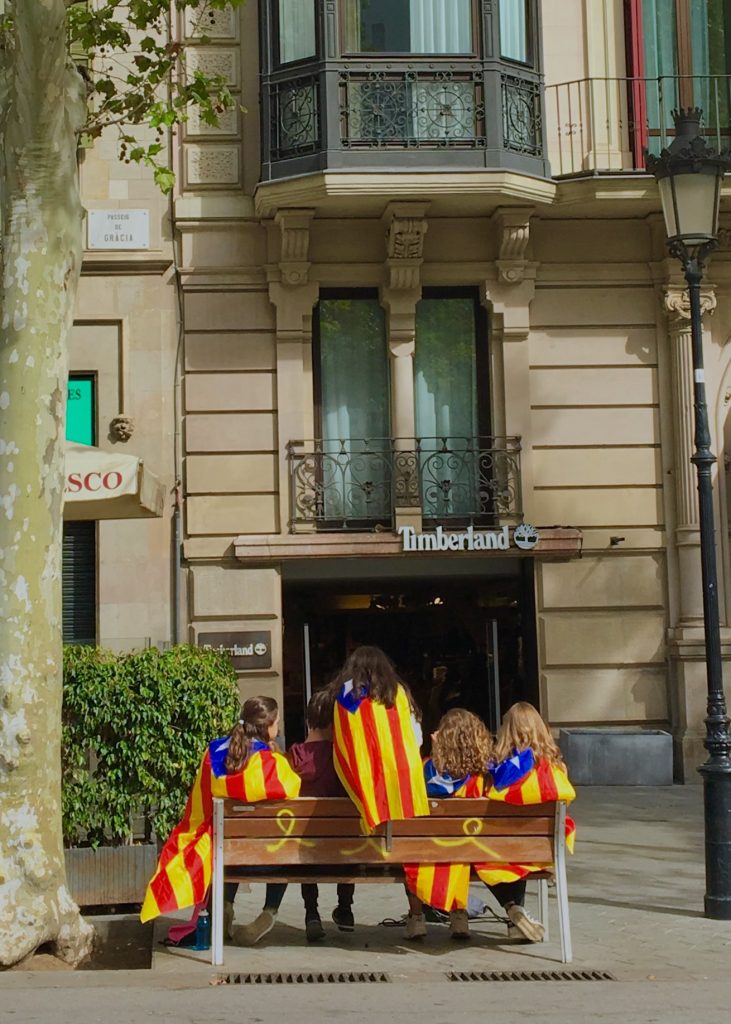 En deux semaines, on a vu dans Barcelone des pique-niques pour la république devant la Sagrada Familia, des soirées dansantes pour la justice sur l’avenue Marina, une immense partie de ballon dans la rue pour le dialogue dans Gràcia, et bien sûr, de grandes manifestations, dont celle ayant réuni les grandes Marches pour la liberté qui ont fait converger des millions de personnes, à pied, vers Barcelone sur des distances de quelques 100 km.