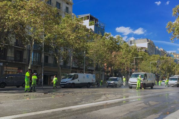 Étrange réveil dans une ville où, si ce n’était des débris calcinés que nettoient les employés municipaux sur Passeig de Gràcia, on pourrait croire que rien de bien grave ne s’est passé hier.
